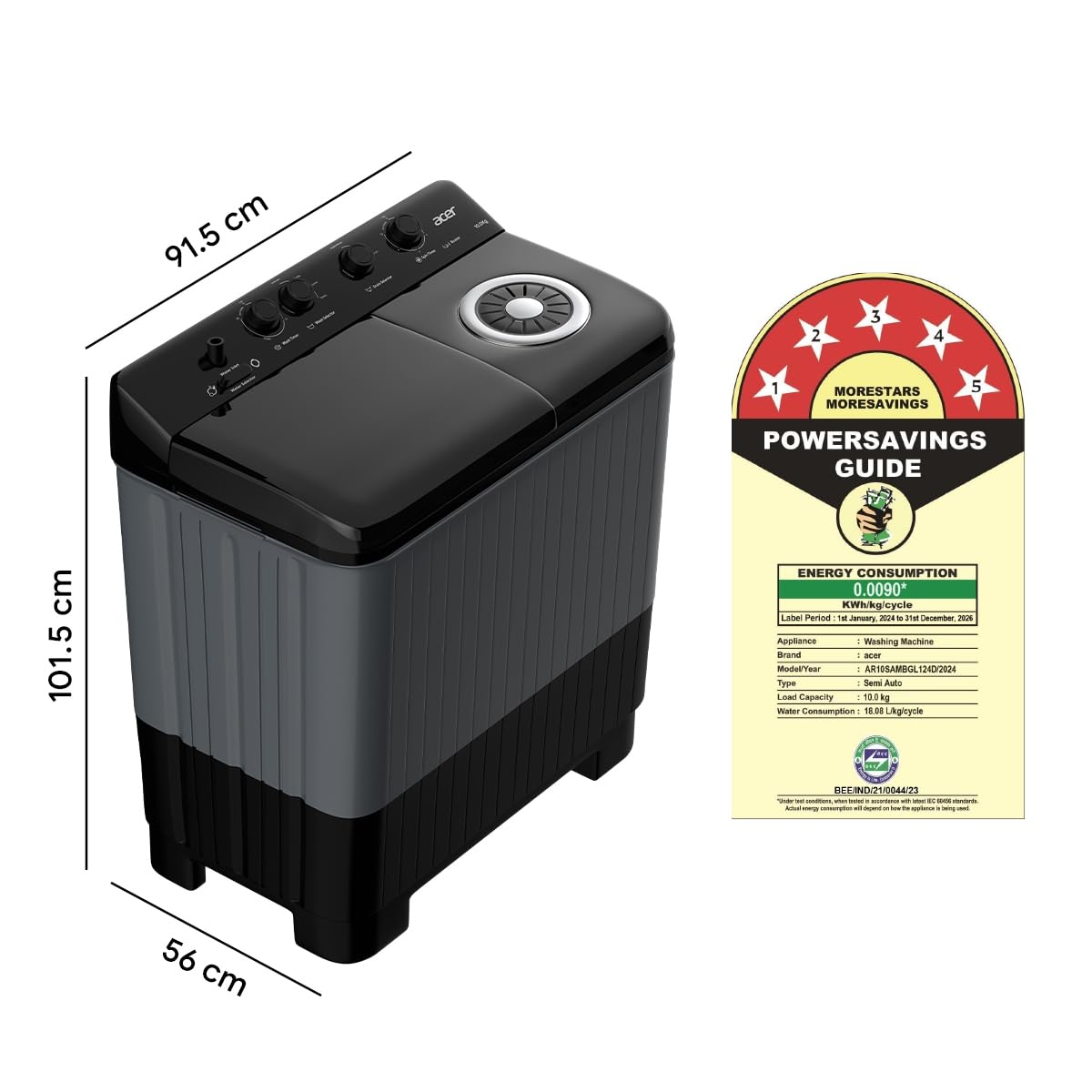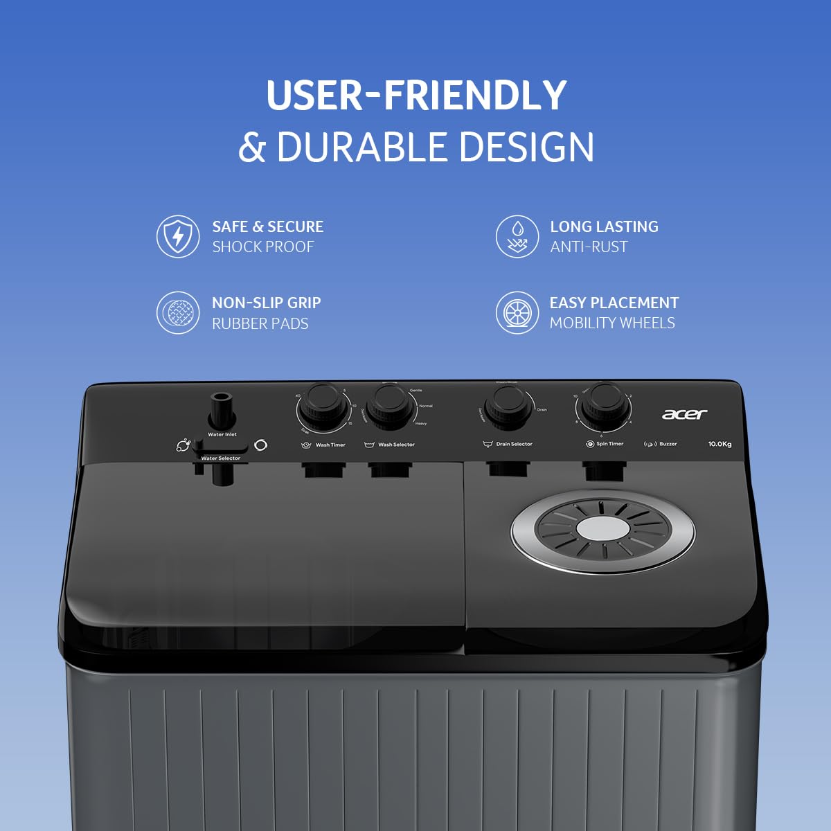 Acer 10.0 Kg 5 Star Semi-Automatic Top Loading Washing Machi…