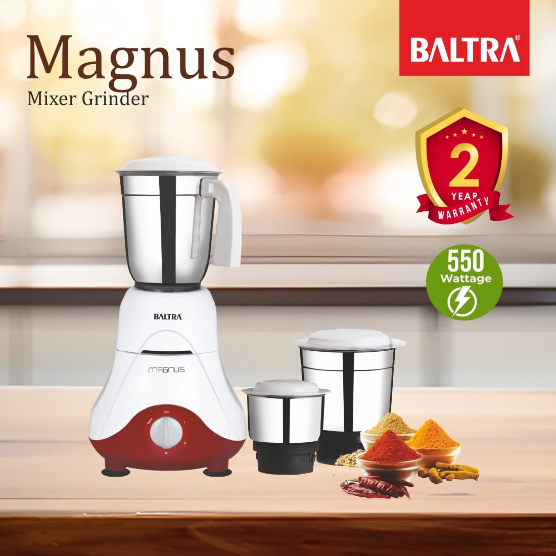 Baltra Magnus BMG-162 Mixer Grinder 550W with 3 Stainless St…