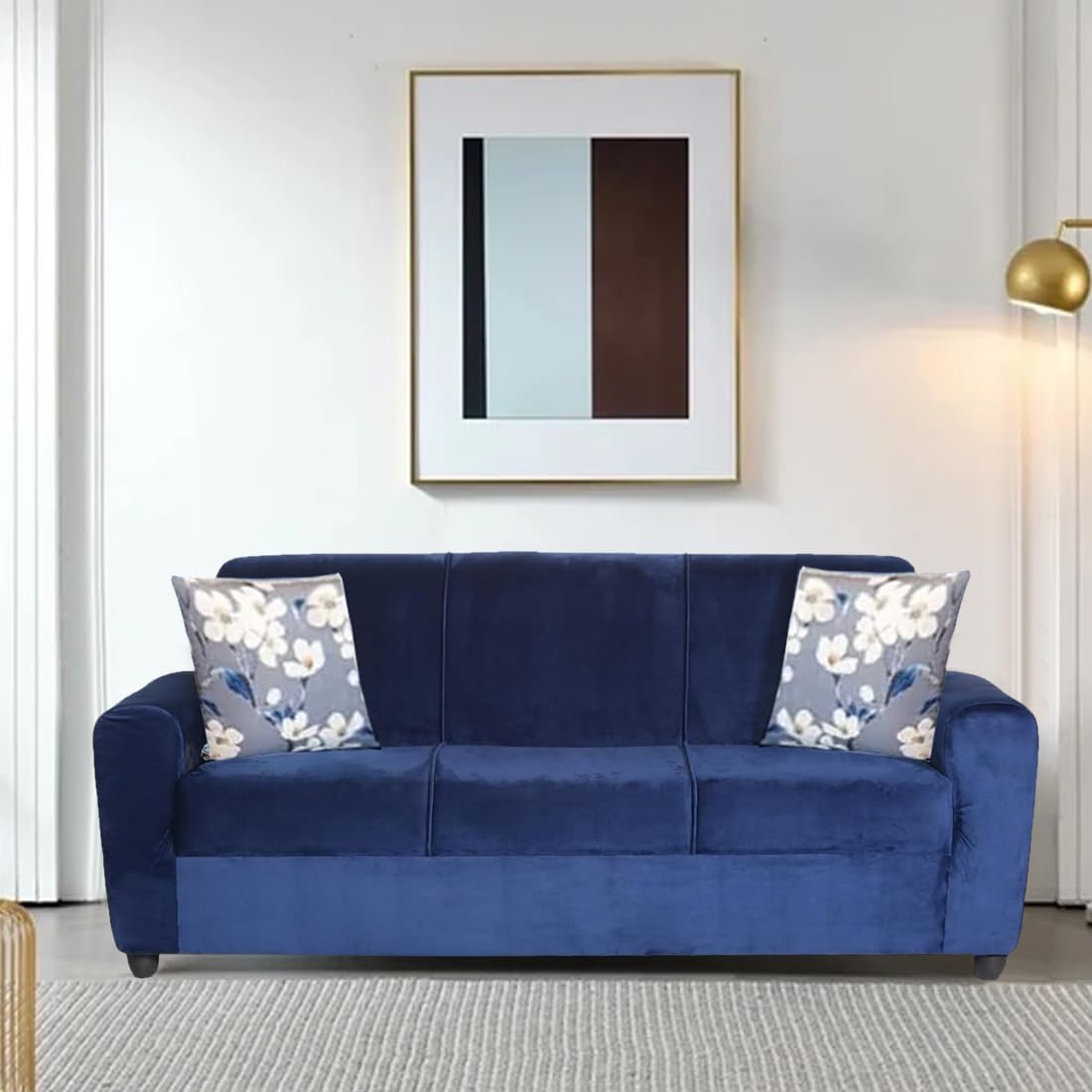 FURNY Mario 3 Seater Sofa Set with Floral Cushions for Livin…
