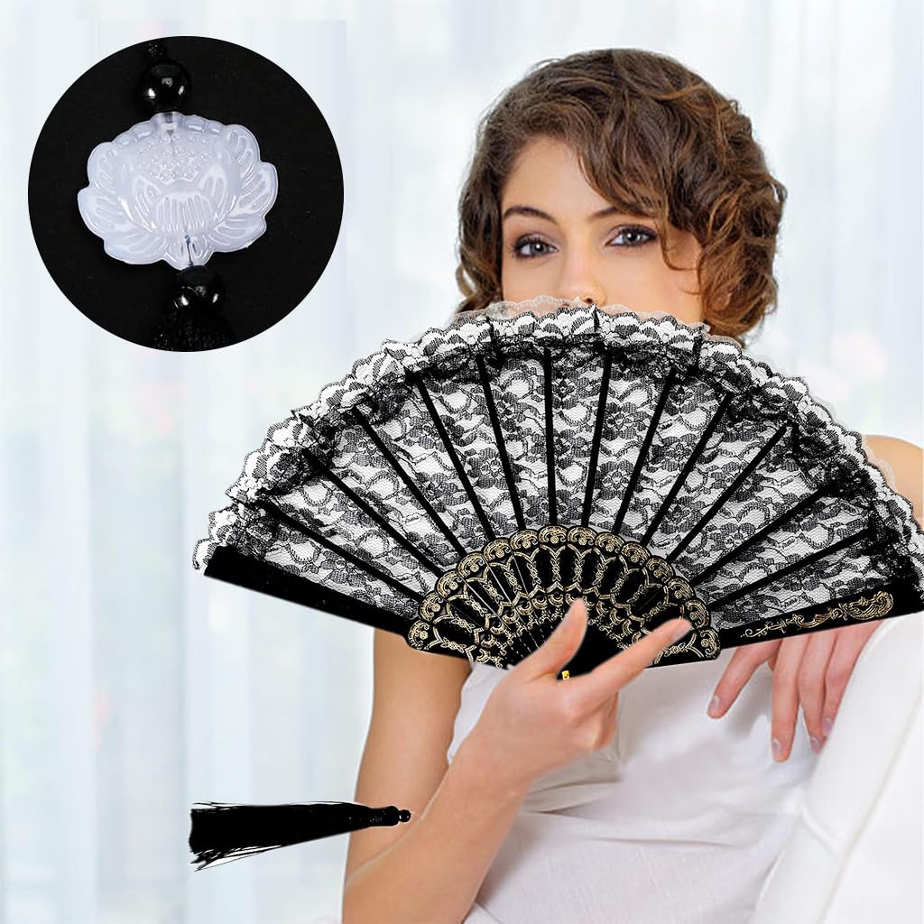 HASTHIP® Hand Fan Chinese Fan Hand Fan Black Lace Tassel Fan…