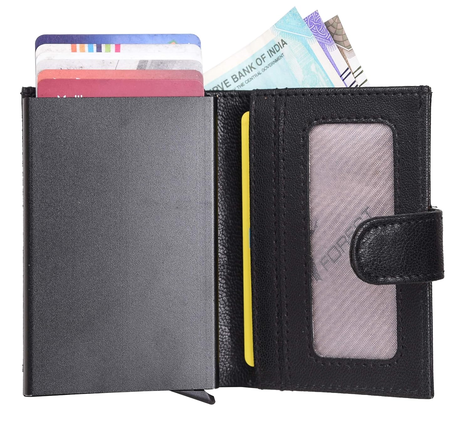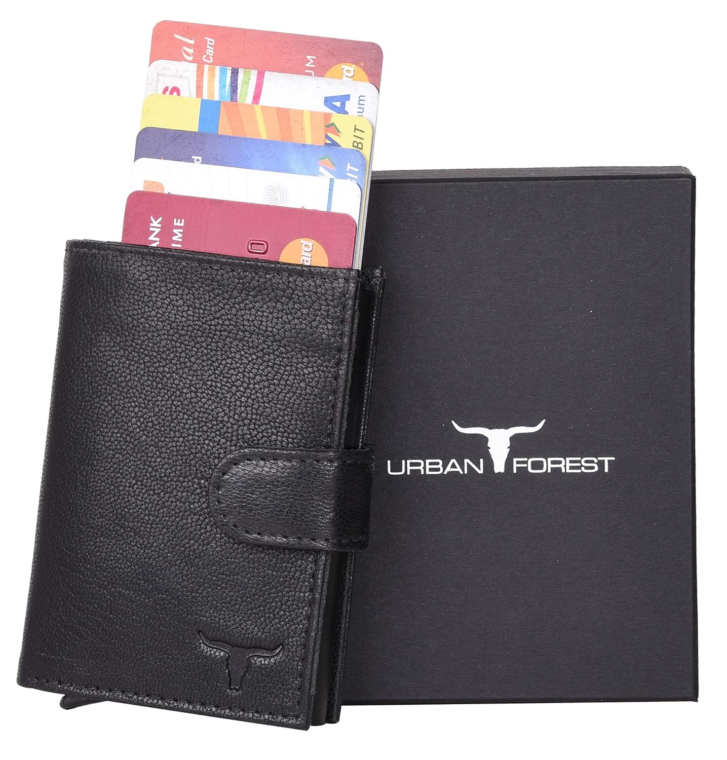 URBAN FOREST Leather Drake Black Metal Card Holder Wallet Fo…